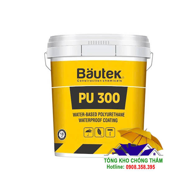Bautek PU 300 là lớp phủ chống thấm polyurethane hệ nước một thành phần, dùng cho mái nhà lộ thiên, mang lại độ bền cơ học và khả năng chống thấm vượt trội. Loại màng này tạo thành một lớp phủ bảo vệ bền chắc, đàn hồi, ngăn chặn sự xâm nhập của hơi ẩm, chặn nước, chống tia UV và có khả năng chịu lực cơ học cao.