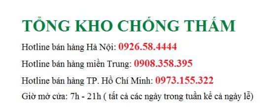 Tổng kho chống thấm đã được nhiều tổ chức có uy tín trong và ngoài nước đánh giá cao và lựa chọn làm đối tác lâu dài bởi chất lượng sản phẩm và phong cách làm việc chuyên nghiệp của đội ngũ nhân viên. Với rất nhiều khách hàng hài lòng về chúng tôi, Tongkhochongtham.com tự tin mang lại thành quả tốt đẹp cho đối tác của mình. Với chuyên môn và kinh nghiệm đang có, Tổng kho chống thấm mong mỏi và tự tin trở thành sự lựa chọn của Quý khách hàng.